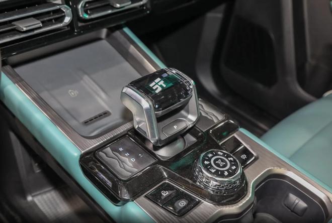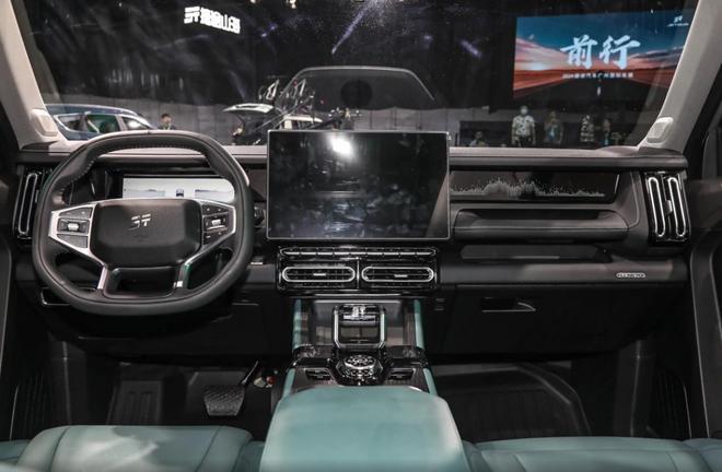 不过官方准备了轻野套装,4998元可以选装,备胎罩升级为可编程显示屏,支持IP67防水与700mm涉水场景,可显示警示标语和个性化图案。此外,副驾多了一个智能交互屏,10.33英寸触控屏集成越野导航、车辆状态监测功能,主副驾协同操作,副驾就像赛车比赛中的领航员。
