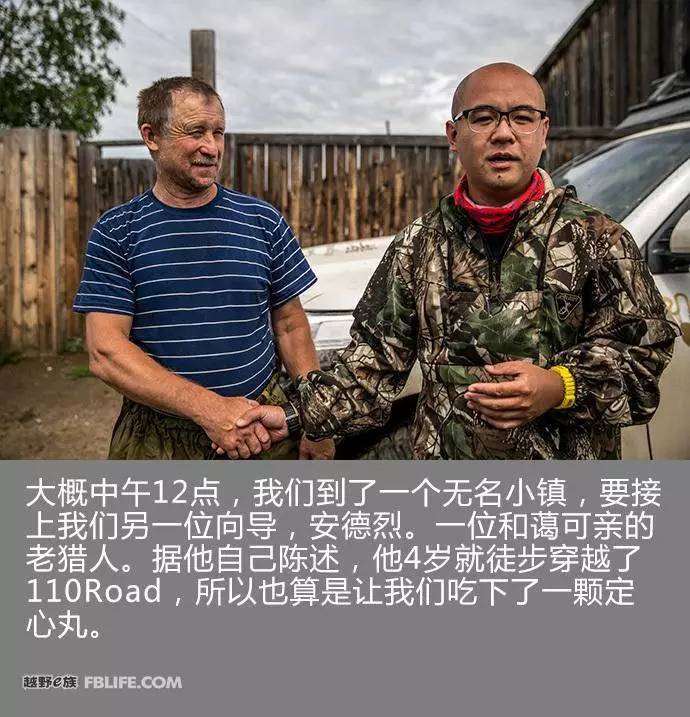大概中午12点,我们到了一个无名小镇,要接上我们另一位向导,安德烈。一位和蔼可亲的老猎人。据他自己陈述,他4岁就徒步穿越了110Road,所以也算是让我们吃下了一颗定心丸。